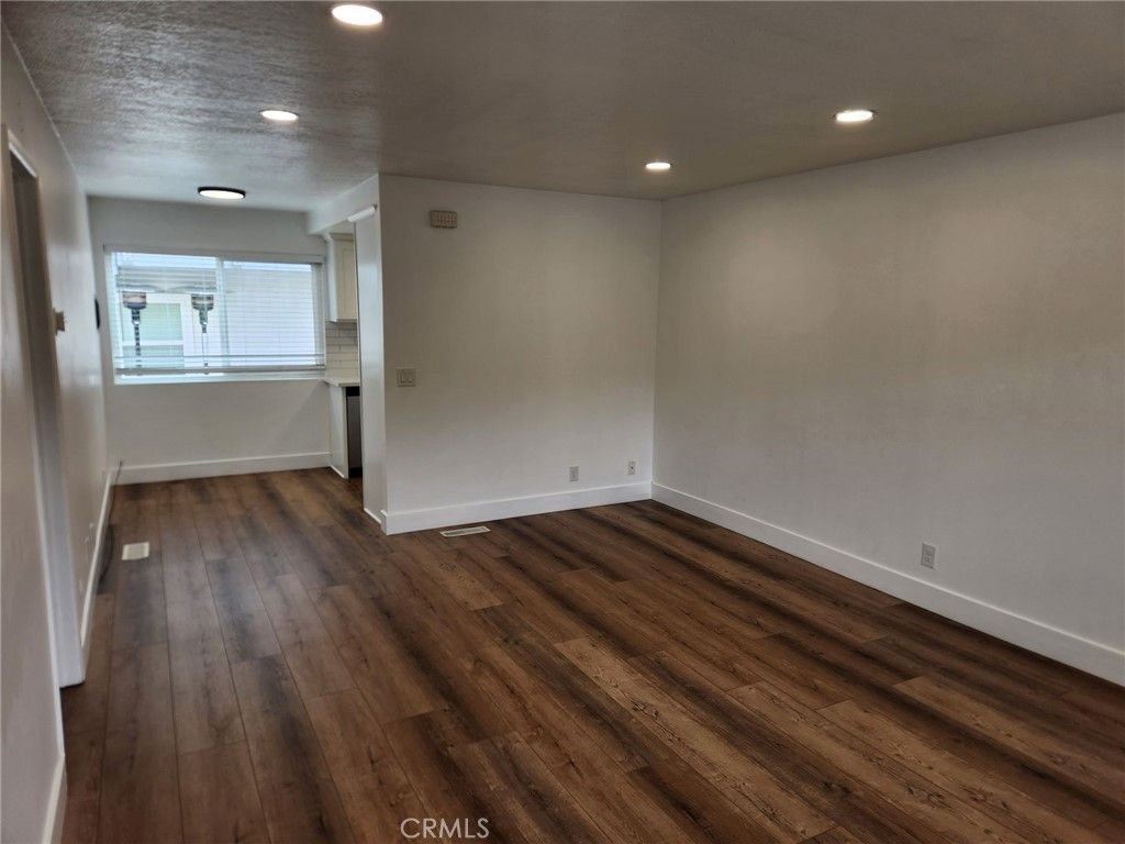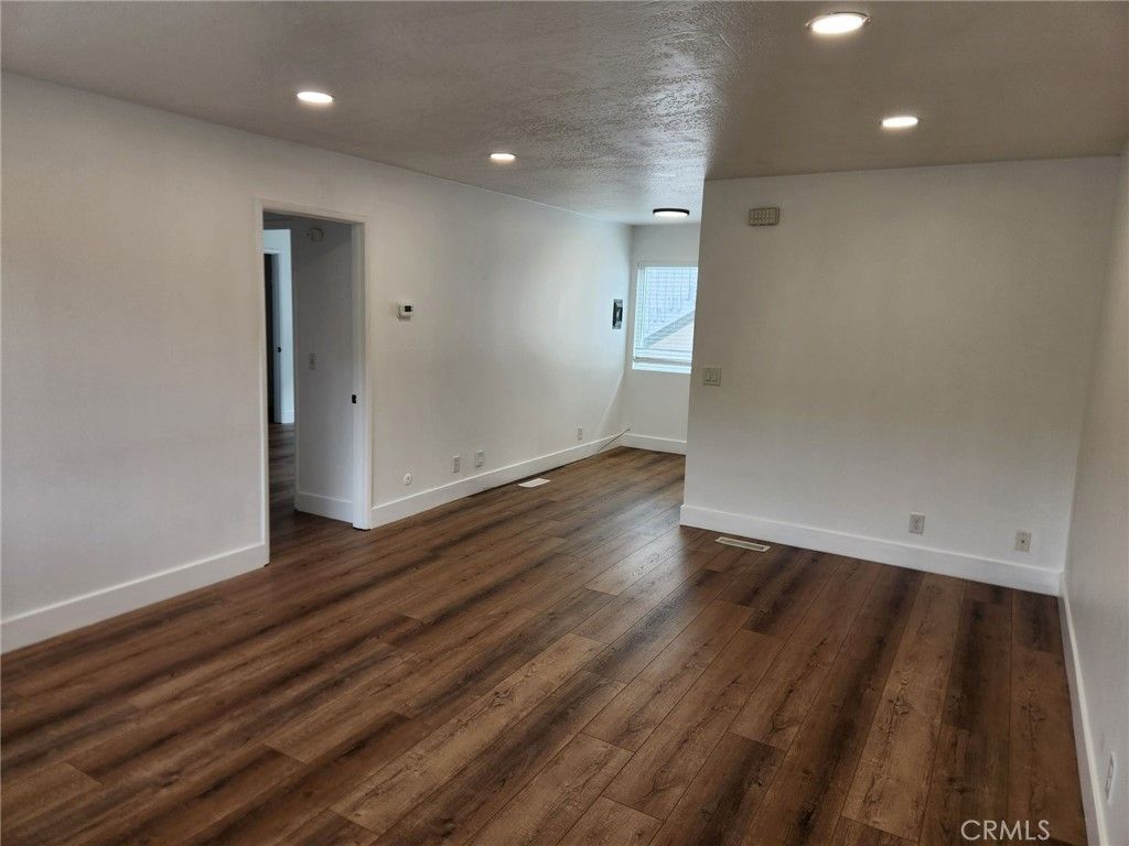 Beautifully recently remodeled upstairs unit w/ 2bdrm + 1ba. Remodeled kitchen with quartz counters and white shaker cabinets with black hardware. Dual sink vanity in the bathroom and recently reglazed tub. LVT floors throughout and fresh paint. Both bedrooms have spacious closets and ceiling fans. Includes 1 garage space in shared garage. Community laundry. Great location - close to beach.