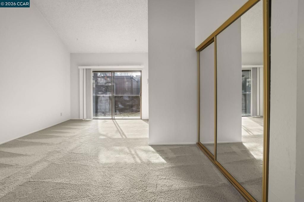 Second-story studio condominium with a private balcony and high vaulted ceilings that create an open, airy feel. The functional layout offers comfortable living space with abundant natural light and added privacy from the upper-level location. A dedicated laundry closet includes in-unit washer and dryer hookups for everyday convenience. Kitchen appliances are included with the property. The community is calm, quiet, and well maintained, featuring mature landscaping throughout the complex and very nice parking lot with guest parking available. HOA amenities include a community swimming pool, with tennis and pickleball courts. A neighborhood park and shaded childrens playground are directly across the street from the community entrance. Conveniently located in Pleasant Hill near shopping, dining, and daily essentials, including Sun Valley Mall. Easy access to Highways 680 and 4 makes commuting simple, while Diablo Valley College is just minutes away. The surrounding suburban neighborhoods reflect strong pride of ownership and a welcoming residential atmosphere. HOA dues include select utilities and contribute to the care of the grounds and lush greenery that define the community. An excellent opportunity for low-maintenance living in a desirable and peaceful area.