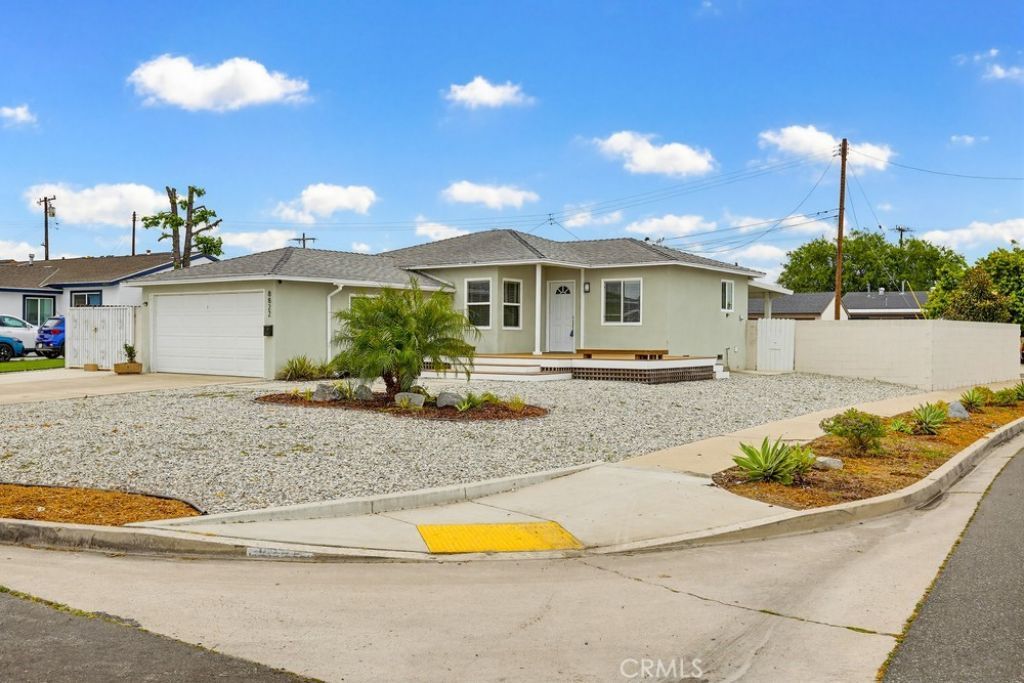 Mid-century Modern 3 bedroom with GREAT ADU & JADU POTENTIAL! Or 2 duplexes with SB 9! Oversized 7,526 square foot flat lot on a cul-de-sac AND street to alley AND corner lot and RV/boat parking. This maximizes options for ADU/JADU/SB 9 lot split. Beautiful updated home with large fenced backyard AND huge front yard and side yard ON A QUIET CUL-DE-SAC! Great home in wonderful location to move in immediately, plus add tons of value and living space with the expedited ADU/JADU/SB9 60-day plan approval! Friendly modern wrap-around entertainment deck. Immaculate backyard with pristine evergreen lawn and covered relaxation patio. Room for many fruit trees! Updated eat-in kitchen with Shaker cabinets, quartz counters and deep basin sink. The kitchen comes fully equipped with a premium stove, oven, microwave, and refrigerator. A washer and dryer are also included. The updated bathroom features modern finishes that complement the home's refreshed feel throughout. The property features an attached 2-car garage, offering convenient parking and additional storage space.