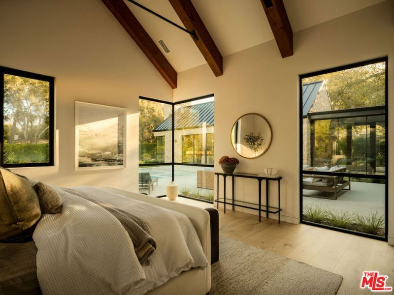 Set on approximately 1.1 flat acres along a serene, walkable Hope Ranch street, this brand new construction, single-level private sanctuary designed by Montecito Ferguson-Ettinger architects, captures the California modern farmhouse essence. The main residence unfolds with 4 bedrooms, each graced with its own ensuite bathroom, while a great room anchored by a Santa Barbara sandstone fireplace invites intimate gatherings. The gourmet Space Theory kitchen, features custom white oak cabinetry, luminous Taj Mahal quartzite, & Thermador appliances for the culinary enthusiast. A private ADU offers gracious hospitality, while a dedicated office/studio building & yoga studio above the 3-car garage provide spaces for creativity & wellness. Outside, a sparkling pool beckons amid meticulously landscaped grounds. Fleetwood doors dissolve boundaries between indoors & out, while Lutron lighting & shades, solar panels, & a standing-seam metal roof reflect thoughtful stewardship. This is Hope Ranch living reimagined.