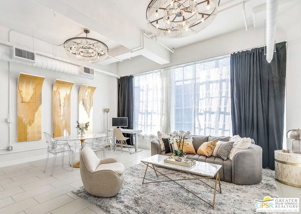 Step into cinematic downtown luxury at 939 S Broadway. This stunning 1-bedroom, 1-bath corner loft glows with light from both the south and west, filling the space with golden afternoon warmth and dramatic sunset views. Framed by ceiling-to-floor plush velvet curtains, the expansive living area is anchored by two grand statement chandeliers, while a three-tier crystal chandelier in the entryway sets an unforgettable tone the moment you arrive. Offered fully furnished, this home is a turnkey designer showcase perfect as a high-performing Airbnb investment or a sophisticated city retreat. Enjoy soaring ceilings, polished concrete floors, and timeless industrial character complemented by resort-style amenities including a rooftop pool and spa, fitness center, and 24-hour security. While the building itself does not include on-site parking, secure parking options are conveniently located directly across the street, making city living both luxurious and effortless. All just steps from DTLA's finest dining, shopping, and entertainment along the vibrant Broadway corridor.