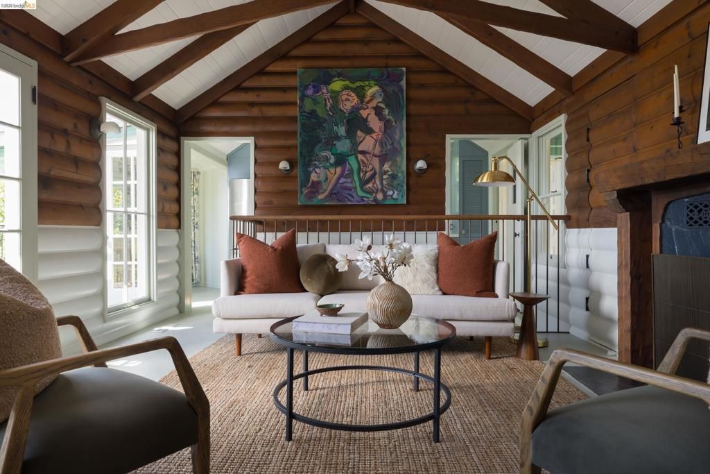 Featured in Architectural Digest, this brilliantly reimagined hillside home in Oaklands coveted Glenview neighborhood reflects a rare and refined vision of preservation and contemporary design. An innovative collaboration between McGriff Architects and Becky Carter Interior Design Studio celebrates the character of the original 1932 home with extensive upgrades throughout. The 3-bed, 3-bath main residence preserves the cabin's quiet charm while revealing a carefully layered architectural transformation within. The light-filled living room remains the heart of the home, framed by exposed beams and an original flagstone fireplace, and flows onto a private deck retreat perched among majestic oaks with expansive views reaching the Bay and the peaceful glen below. The kitchen and dining areas embrace crafted simplicity and character-forward design, reflecting the homes joy, warmth & thoughtful detailing. An expanded lower level offers modern, private quarters with convenient laundry, enhancing both livability and flow. A complementary detached studio cottage with its own kitchen, bathroom, and deck offers an inviting space perfect for guests, WFH, or a quiet retreat. Together, architecture, interior design, & nature create a home that feels both timeless and quietly extraordinary.