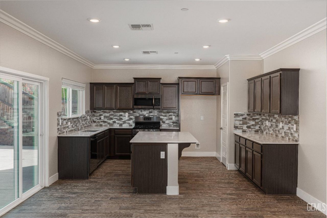 Like-new and thoughtfully designed, this 3-bedroom, 2-bath Gossamer Grove home built in 2019 offers modern living with a functional open-concept layout. The spacious living and dining areas are filled with natural light and feature recessed lighting and durable wood-look tile flooring. The kitchen is the centerpiece with granite countertops, a large island with seating, stainless steel appliances, decorative tile backsplash, pantry, and plenty of storage. The primary suite includes dual vanities, a walk-in shower, and a generous walk-in closet, while the additional bedrooms are comfortably sized. The backyard is built for easy upkeep with expansive concrete, artificial turf, and a retaining wall that adds dimension and privacy. A wide side yard provides extra flexibility with potential RV parking. With solar to keep your bills low and located near parks and walking paths, this efficient home offers a great balance of style, space, and convenience.